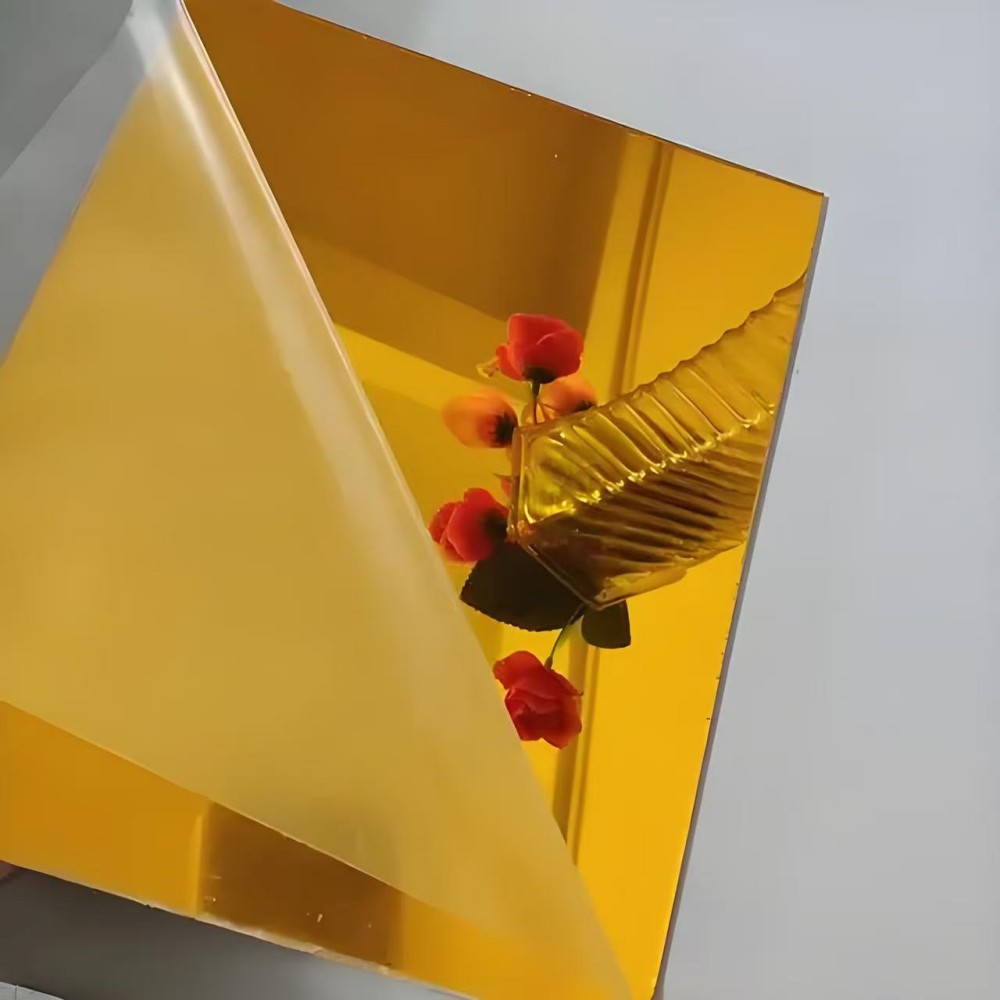 Auksiniai veidrodiniai akrilo lakštai yra aukščiausios klasės dekoratyvinė medžiaga, kurioje prabangus metalo pojūtis dera su lengvomis akrilo savybėmis. Didelio atspindžio veidrodžio efektas pasiekiamas naudojant paviršiaus dengimo technologiją. Auksiniai veidrodiniai akrilo lakštai yra idealus pasirinkimas kuriant vizualinius židinio taškus ir gerinant bendrą erdvės kokybę šiuolaikinio dizaino ir komercinėse srityse.