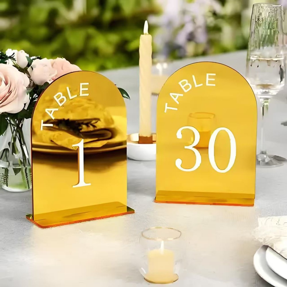 Auksiniai veidrodiniai akriliniai lakštai gali būti naudojami kuriant aukščiausios klasės raides/logotipus, trimatėms raidėms ir prekės ženklų logotipams raižant ar karpant. Auksiniai veidrodiniai akrilo lakštai gali būti naudojami kuriant ženklų / kelio nustatymo sistemas viešbučiams, klubams, biurų pastatams ir kitoms panašioms vietoms.